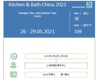 第26屆中國(guó)國(guó)際廚房、衛(wèi)浴設(shè)施展覽會(huì)將于2021年5月在上海拉開大幕。廈門集優(yōu)新材料有限公司誠(chéng)邀閣下參觀:上海新國(guó)際博覽中心, 3E339號(hào)展位。